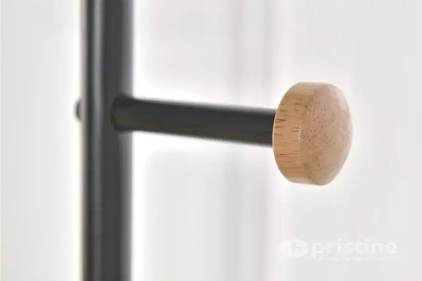 مصنوع من معدن وخشب مطليين بمسحوق أسود، مع أربعة خطافات جانبية لتعليق القبعات والحقائب والأوشحة، ورف جانبي لتعليق الملابس. علاقة المعاطف المستقلة الأنيقة هذه تُضفي لمسةً رائعةً على أي غرفة أو مدخل في منزلك.