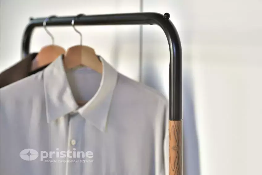 - قضيب التعليق مع سدادات على كل جانب يمنع الملابس من السقوط.