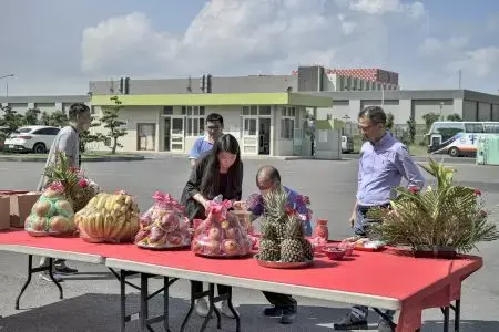 أقامت شركة HTG اليوم طقوسًا مميزة لشكر الأرض، تعبيرًا عن تقديرها وامتنانها لنجاح إنجاز المرحلة الثانية من مشروع مصنع شيانشي ومشروع بناء مصنع لونوي. وقد حضر رئيس مجلس الإدارة، ريتر تساي، وفريق الإدارة، والضيوف الكرام هذه المناسبة المهمة.