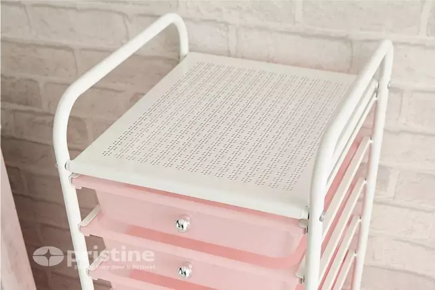 الإطار المعدني متين ويدوم طويلًا. الأدراج البلاستيكية تحافظ على هيكلها وتسهل تنظيفها. بالإضافة إلى ذلك، مساحة سطح إضافية في الأعلى لسهولة الوصول.