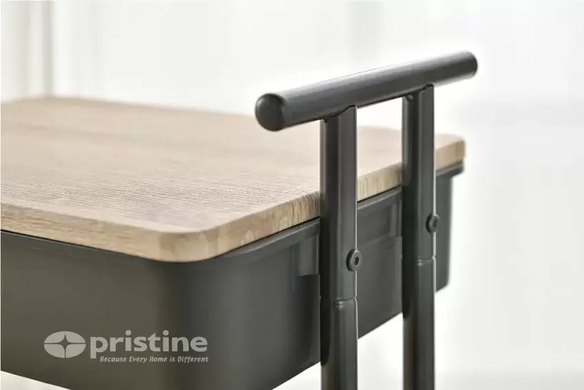 يُسهّل المقبض الجانبي تحريك العربة أينما احتجت إليها، ما يُتيح لك دائمًا إبقاء أغراضك في متناول يدك. صغيرة الحجم ومتينة، تُناسب المساحات الصغيرة والكبيرة على حد سواء. عملية وأنيقة وسهلة الاستخدام، تُناسب تمامًا الحياة اليومية.